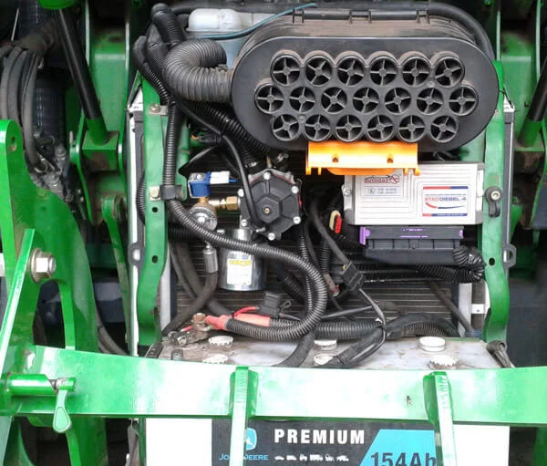 Całość zamontowano w sposób ułatwiający serwisowanie: reduktor, elektrozawór wraz filtrem fazy ciekłej oraz filtr fazy lotnej o dużej pojemności, zamontowano nad akumulatorem, przed chłodnicą. Resztę, czyli czujnik temperatury i ciśnienia, listwę wtryskiwaczy, sondę lambda i termoparę wraz z czujnikiem spalania stukowego rozmieszczono w sposób typowy dla takich ciągników: w okolicach kolektora ssącego i w układzie wydechowym.